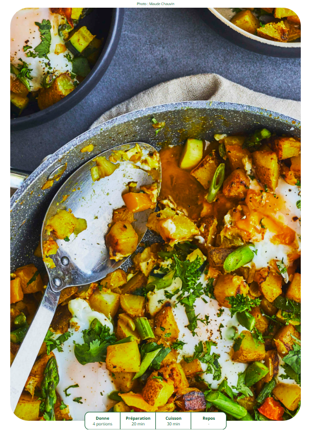 Préparation:- Chop onions into small pieces and cube potatoes into small cubes.