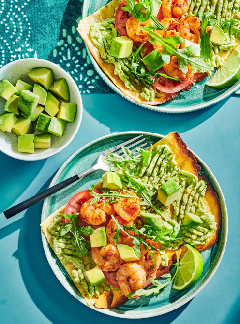 - Répartissez environ 80 ml (⅓ tasse) du mélange de haricots et de salsa sur chaque tostada, puis déposez un œuf sur le dessus.